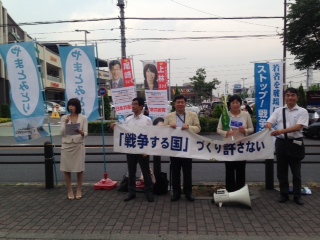 議員有志で、超党派で法案に反対する行動を起こそうと、議会初日の616日に、市内イトーヨーカドー前で、街宣活動を行ないました。共産党、民主党、やまとみどり、生活者ネットワーク8名の議員連名のチラシを配布しました。短時間ではありましたが、通られる方の関心も高く、チラシを受け取ってくれました。
